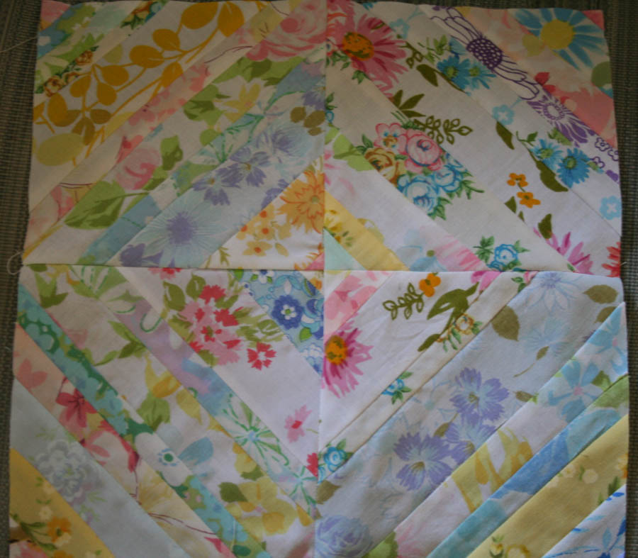 This is the March Block for Vintage Sheet Bee it is a string block for Rachel, so fun and easy!